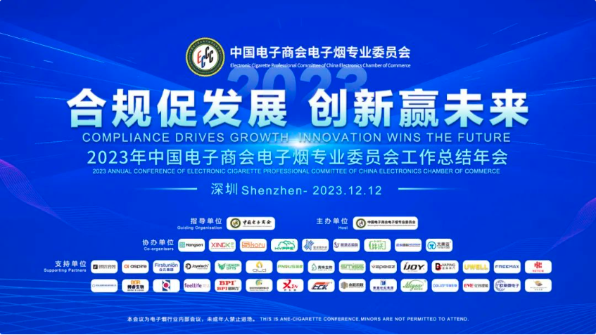 合規(guī)促發(fā)展 創(chuàng)新贏(yíng)未來(lái) 12月12日,2023年中國(guó)電子商會(huì)電子煙專(zhuān)業(yè)委員會(huì)工作總結(jié)年會(huì),在深圳前海萬(wàn)豪酒店圓滿(mǎn)舉行,太美亞作為協(xié)辦單位出席了本次活動(dòng)。