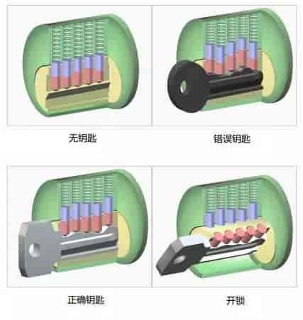 可以先看一下最常見的彈子鎖的結(jié)構(gòu):