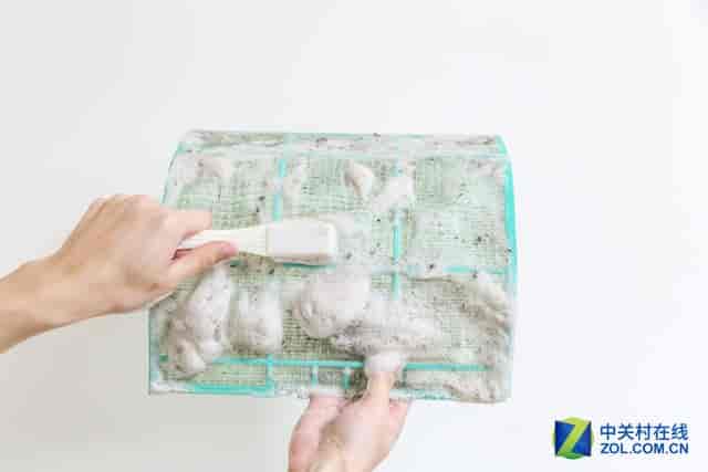 第二步:切斷電源,打開空調(diào)內(nèi)機蓋板,取下空調(diào)濾網(wǎng)進行清洗,濾網(wǎng)是純塑料結(jié)構(gòu),放心大膽的用清水配合洗潔精清洗即可,如果是老空調(diào)的話濾網(wǎng)的灰塵會比較多,而且通常是油性的,需要刷子來刷掉。