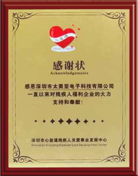 深圳市殘疾人關(guān)愛(ài)事業(yè)榮譽(yù)證書