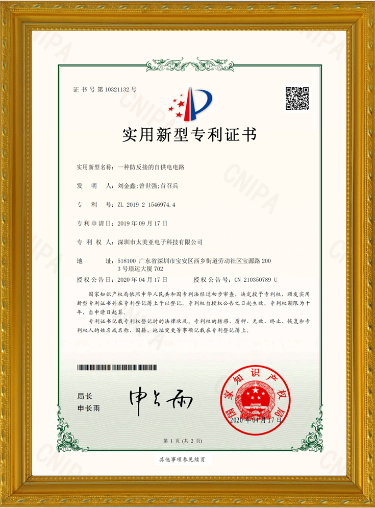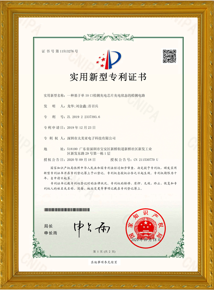 一種基于單IO口檢測充電芯片充電狀態(tài)的檢測電路專利證書