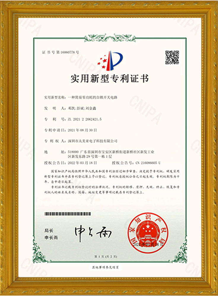 一種簡易零功耗的自鎖開關(guān)電路專利證書