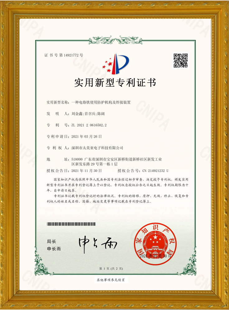 一種電烙鐵使用防護機構(gòu)及焊接裝置專利證書