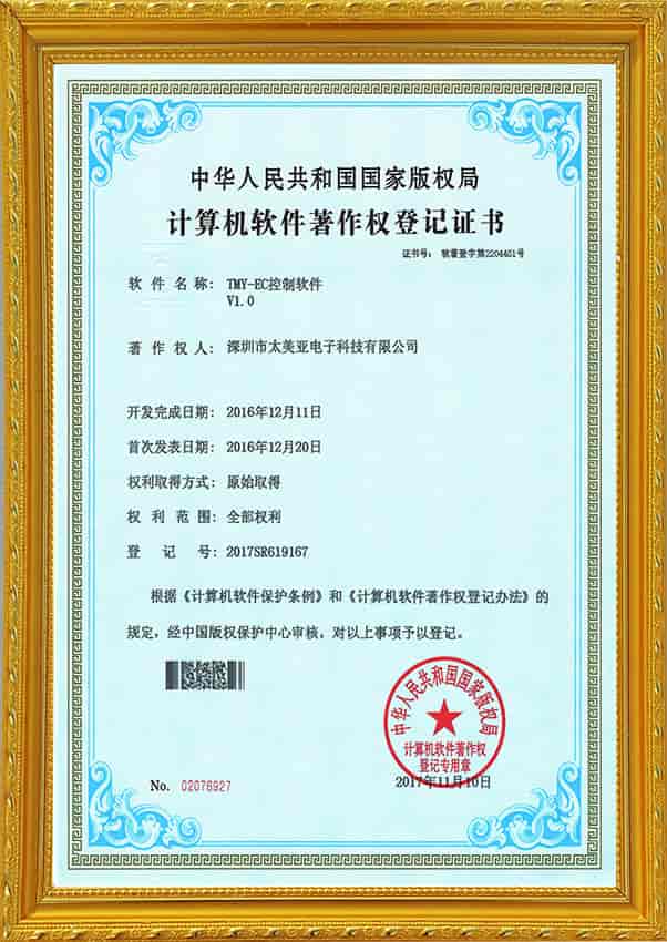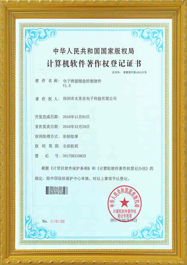 電子烤煙煙盒控制軟件V1.0軟件著作證書